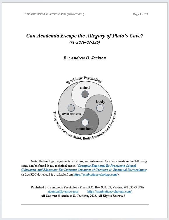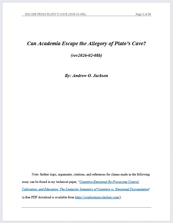 (Reference: Jackson, A.O. (2026). (Technical Paper with Supplements.) Cognitive-Emotional Re-Processing Control, Cultivation, and Education: The Linguistic Semantics of Cognitive vs. Emotional Dysregulation. Symbiotic Psychology Press. (15,500-word paper, free PDF download, new tab)