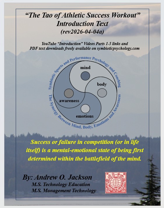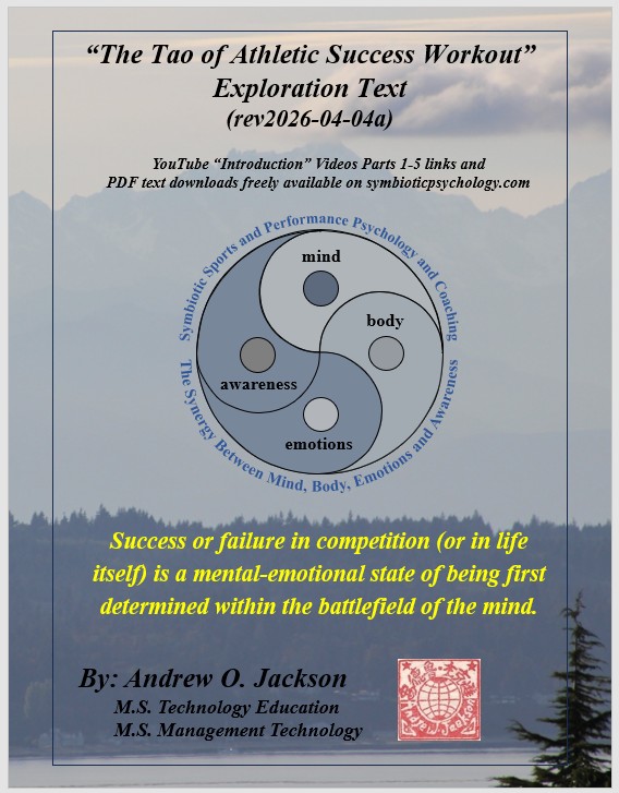 “The Tao of Athletic Success Workout” (immediately below) is a new sports performance psychology based on millions of years of evolutionary survival of the fittest, strongest, most agile and most powerful and clever and their evolved symbiotic harmony of mind, body, emotions, and awareness within a personal power of Qi. “The Tao of Athletic Success Workout” is a freely available self-directed 10-hour program with “Introduction” Videos for hours 1-5 available on YouTube. Hours 6-10 are an instructional, fill-in-the-blank “Exploration” text that further develops an athlete’s skills, abilities, and understandings of their “Quantum Being” nature beyond their Newtonian linear time and 3D spacial awareness, strengths, and power.
